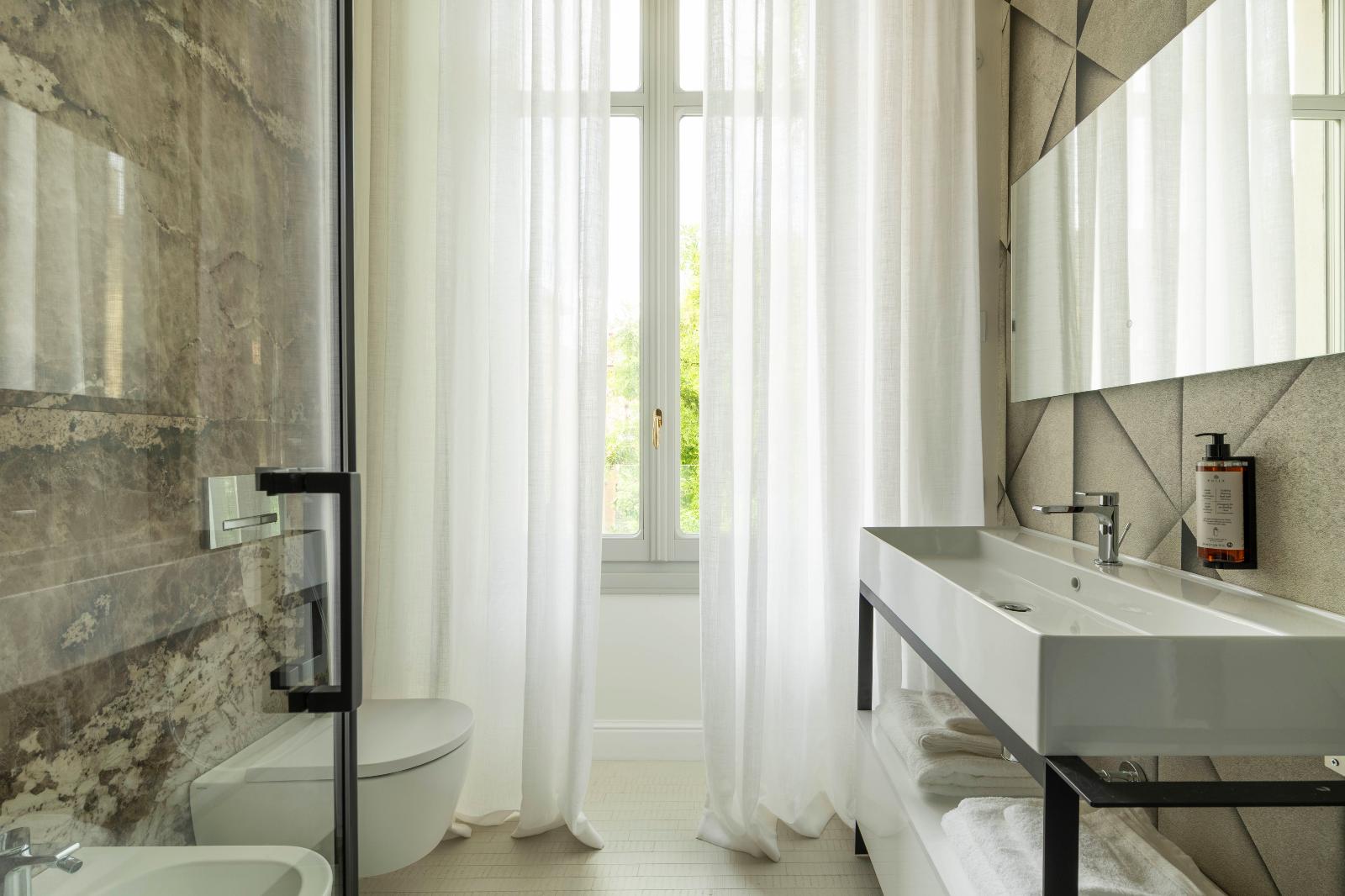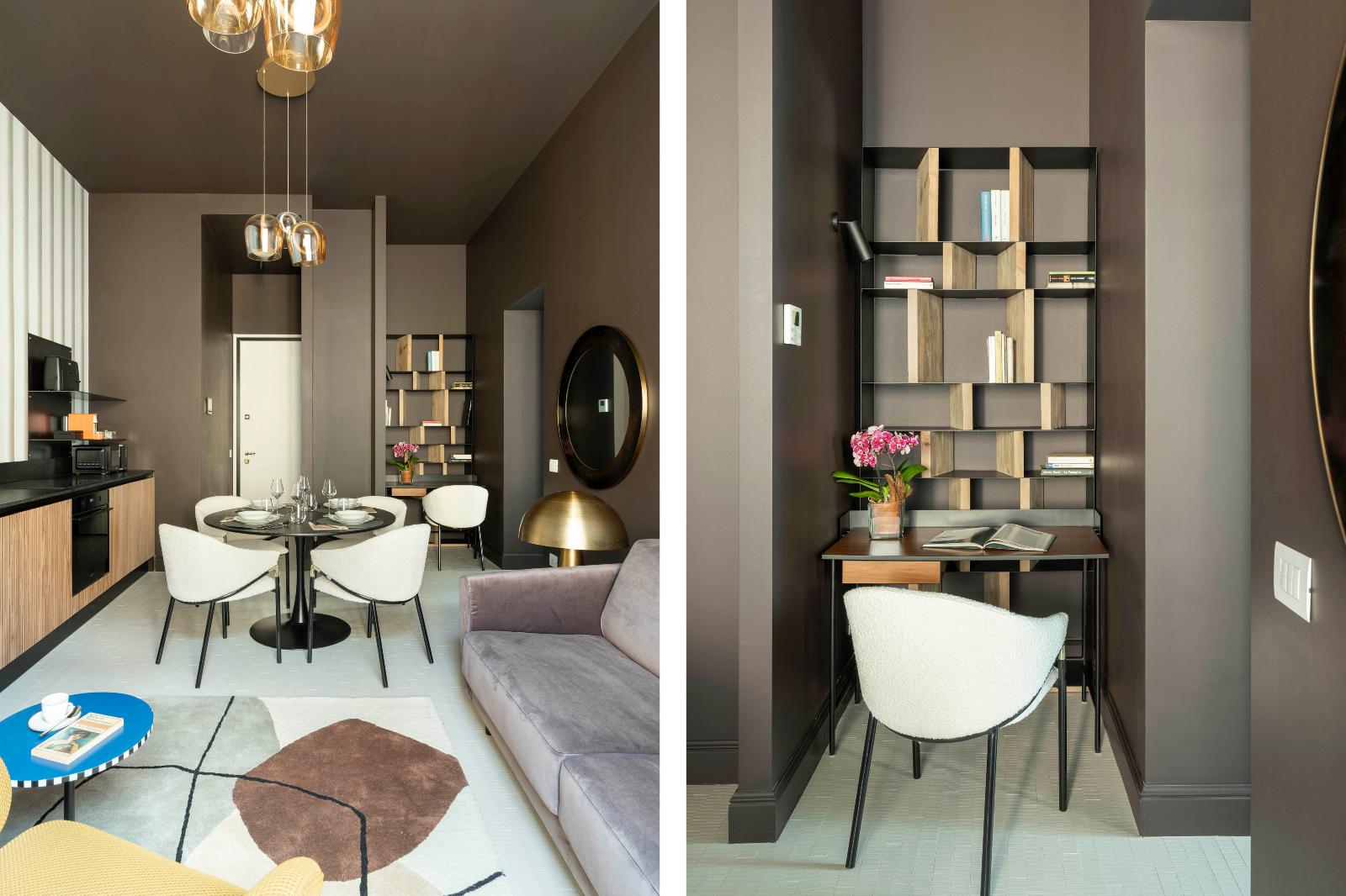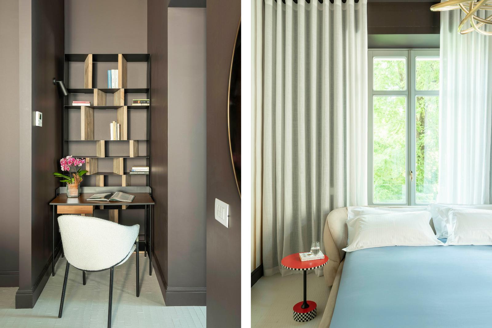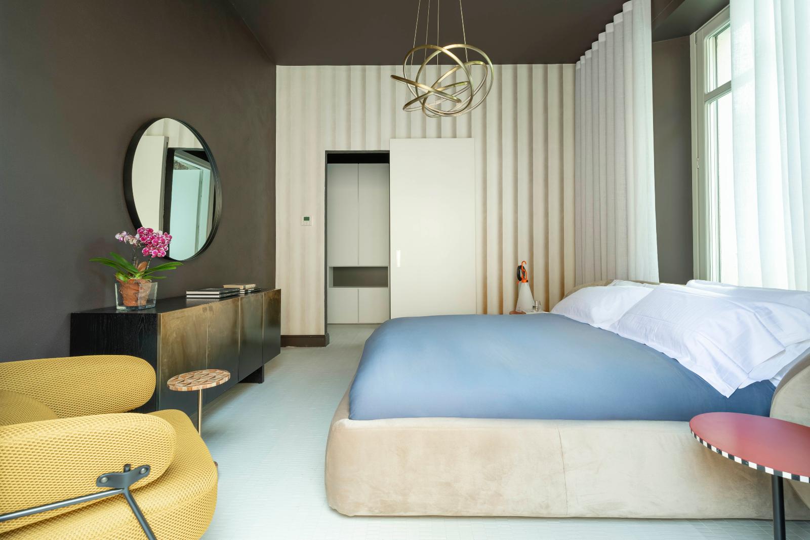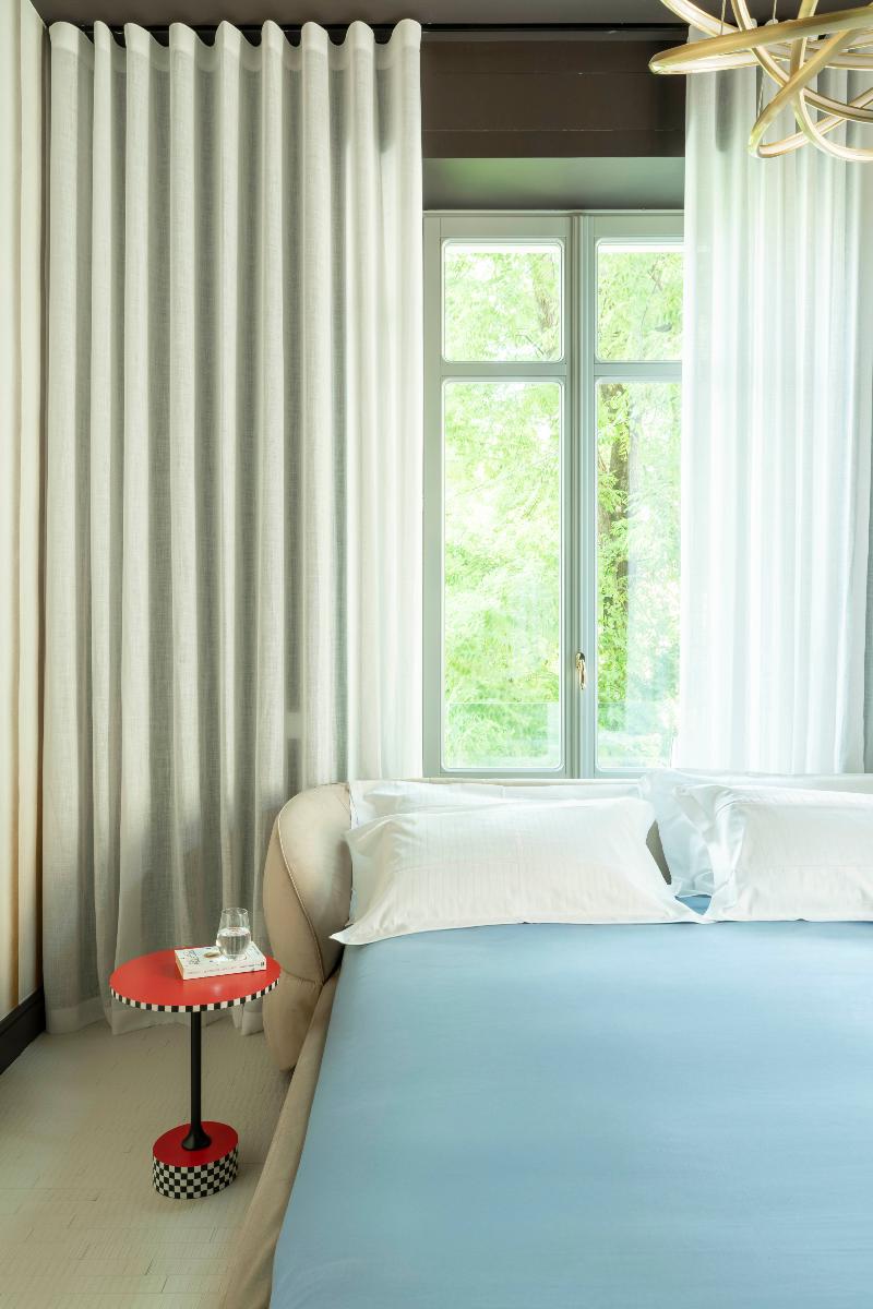 Toutes les chambres sont meublées avec des meubles design avec une référence à l’époque historique de la structure.