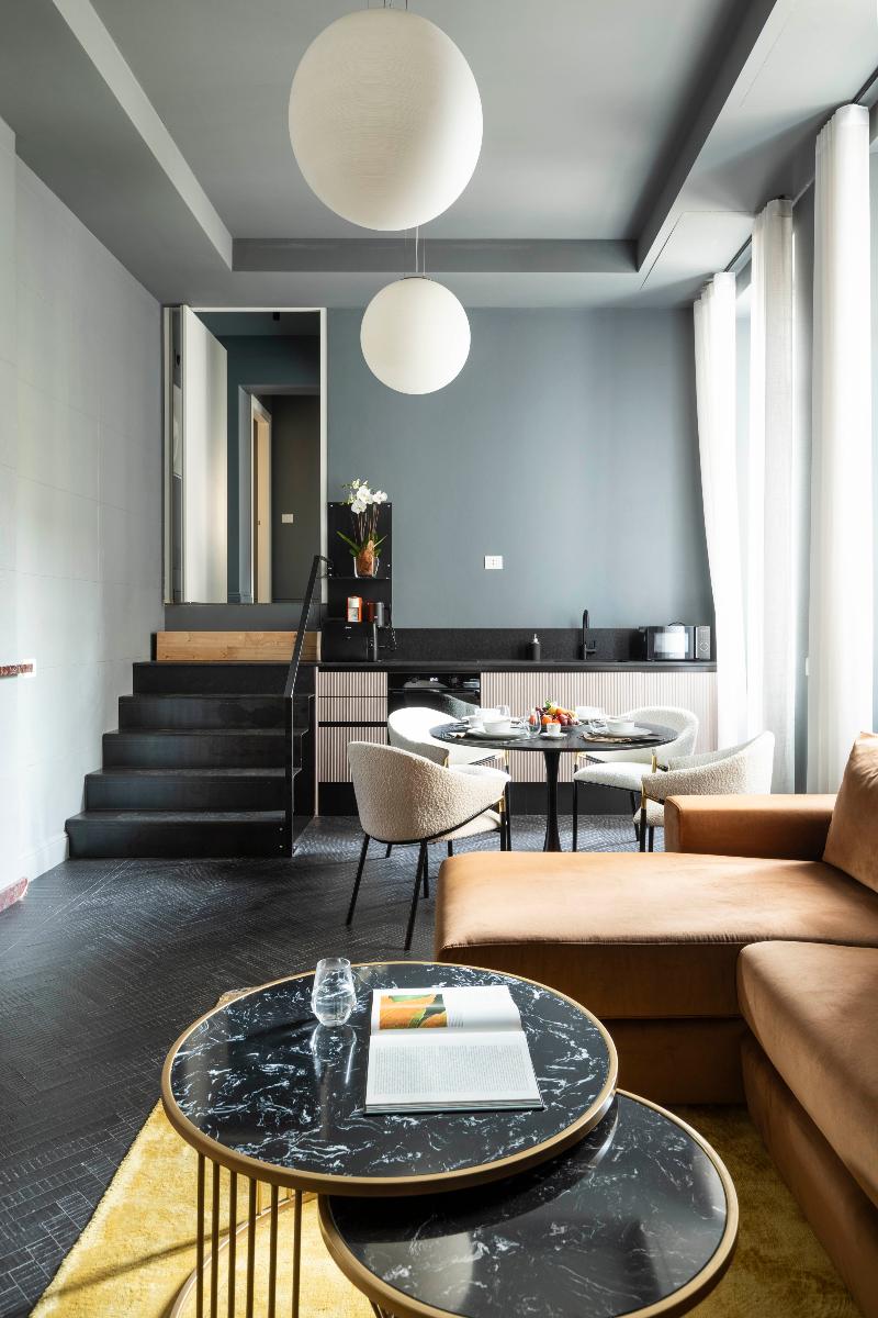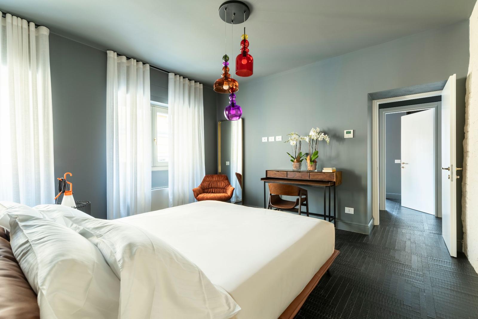 Toutes les chambres sont meublées avec des meubles design faisant référence à l'époque historique de la structure.