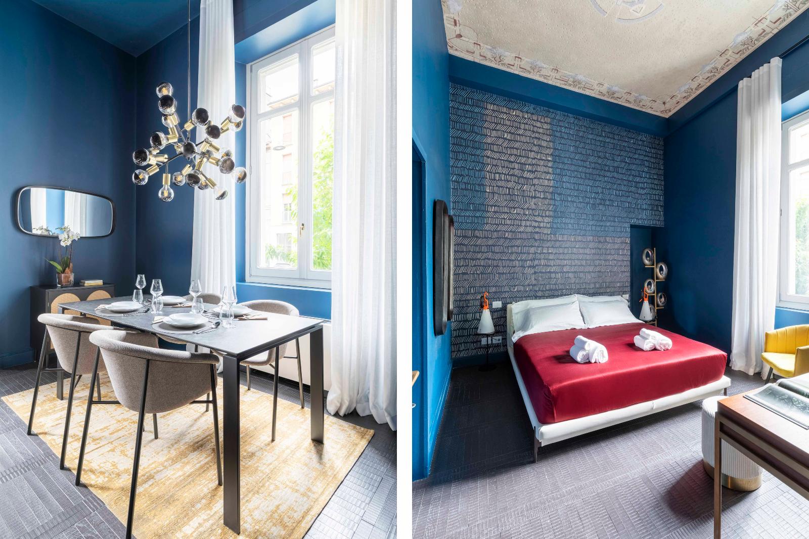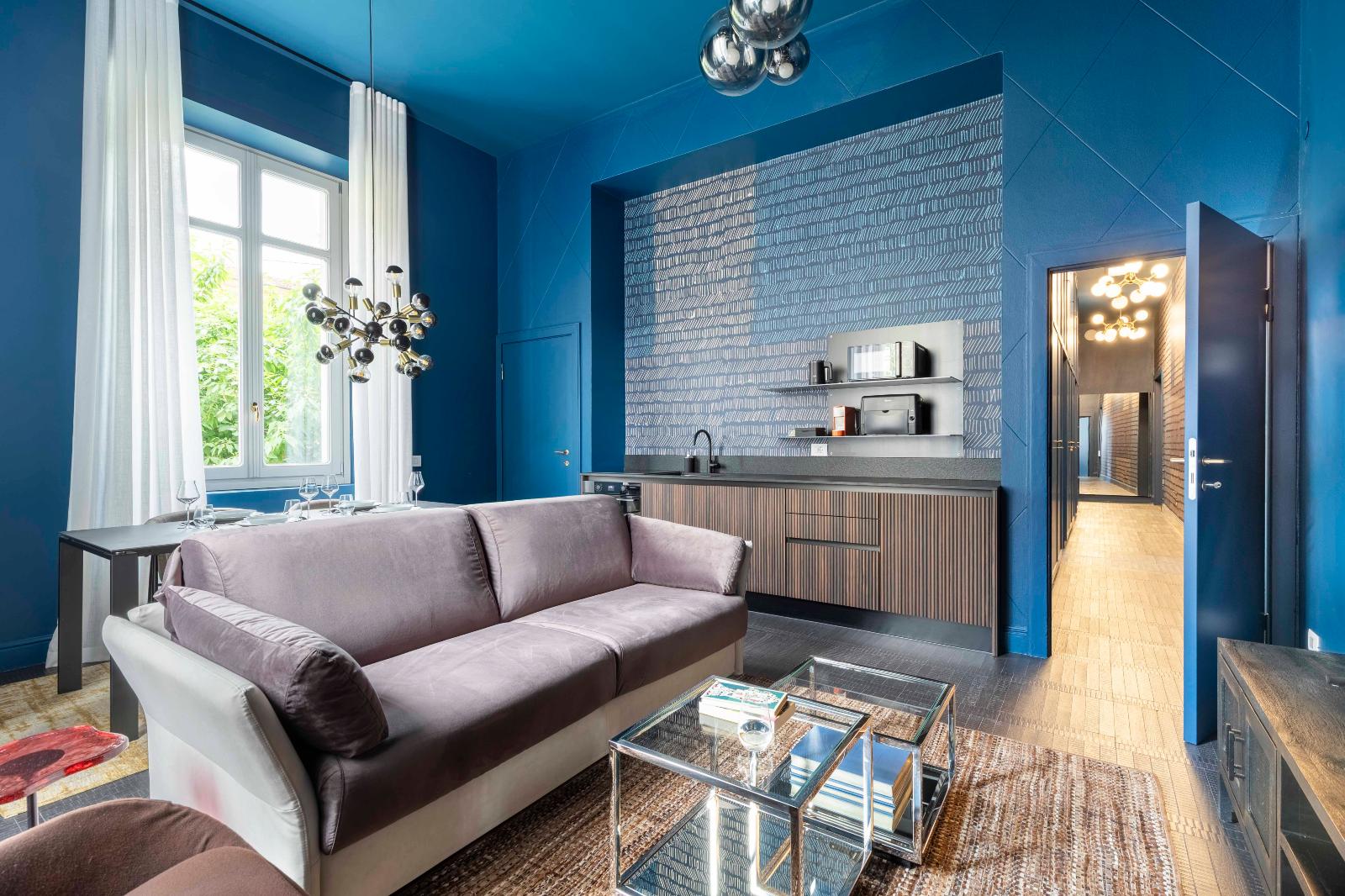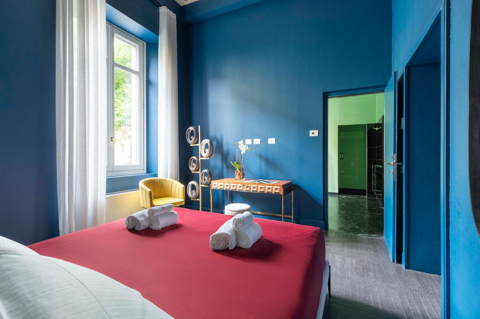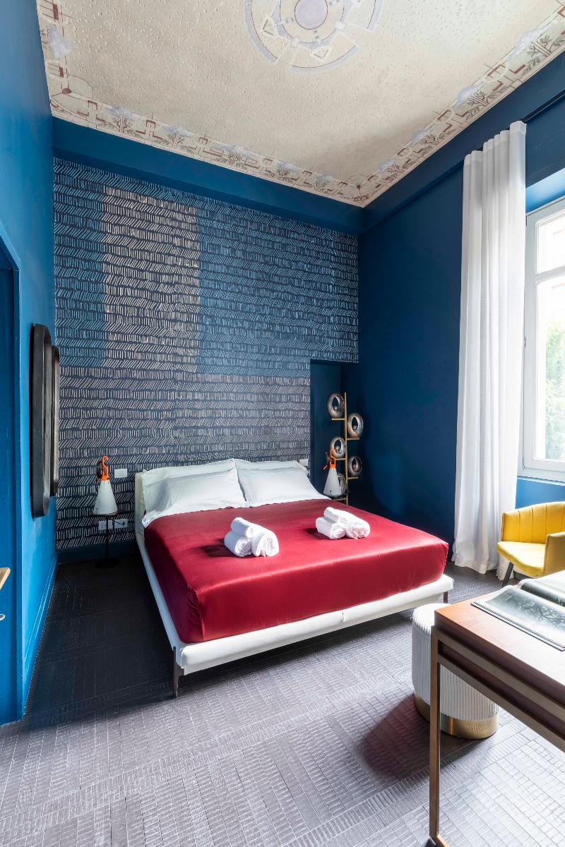 Toutes les chambres sont meublées avec des meubles design avec une référence à l’époque historique de la structure.