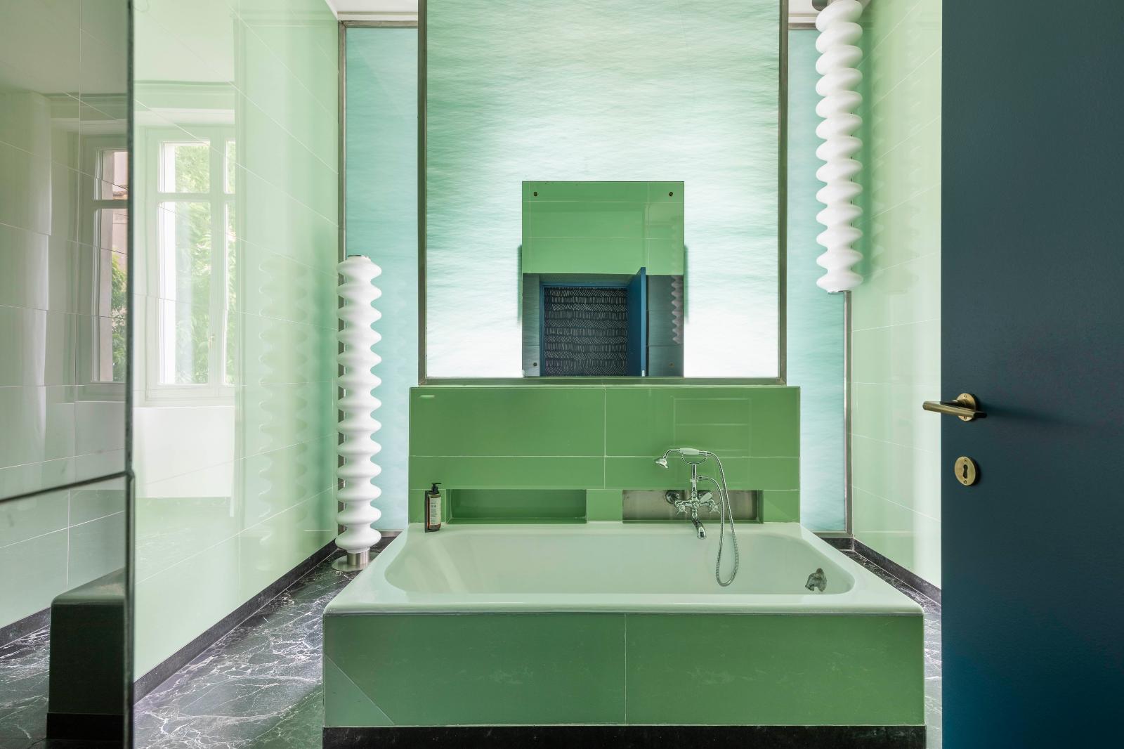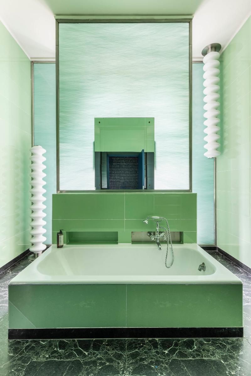 Appartement deux pièces avec la particularité d'une grande salle de bain, joyau d'histoire et de design, où le charme du passé se conjugue avec le confort du présent.