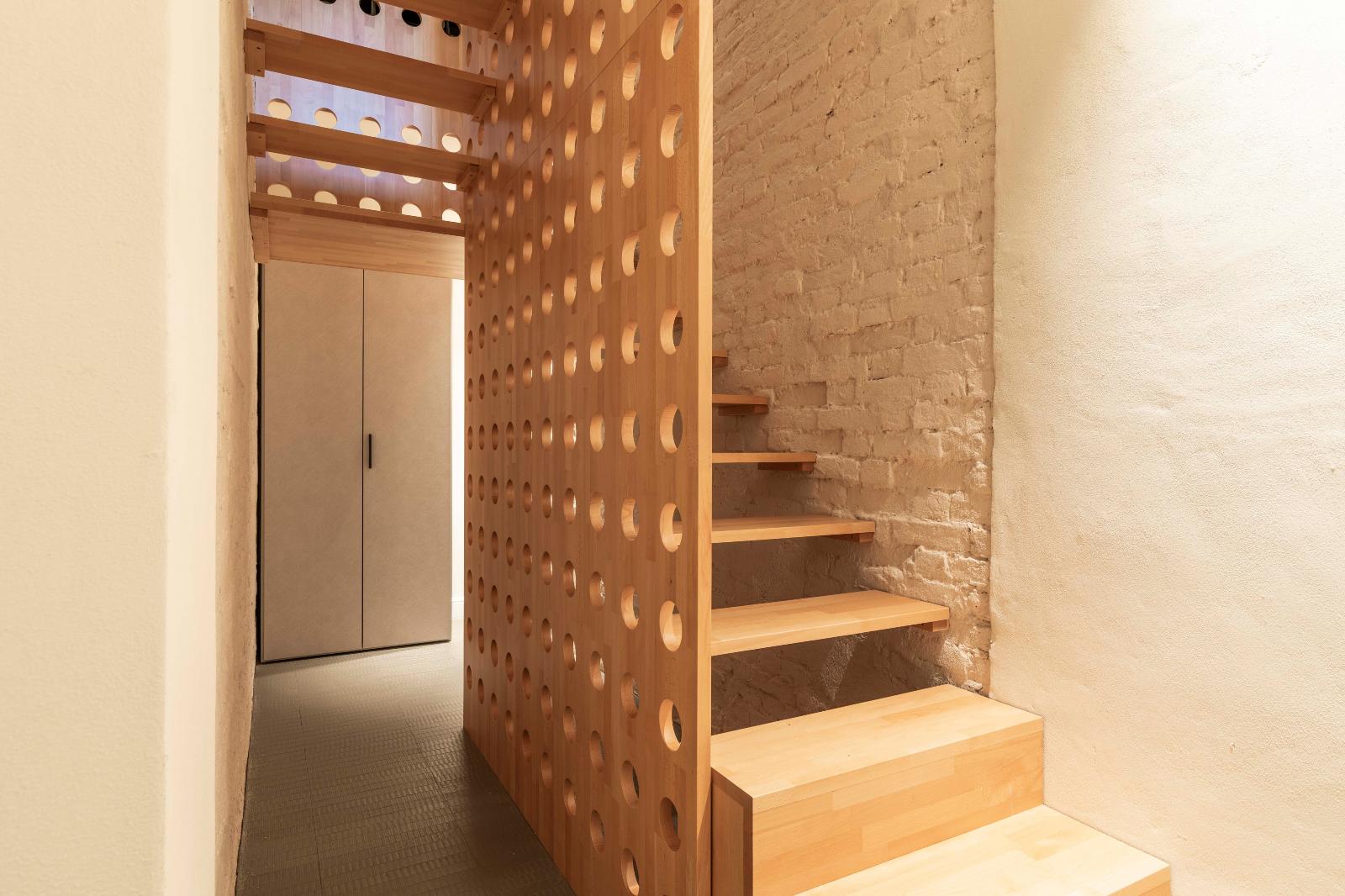 Appartamento bilocale con ingresso a piano terra e una scala interna che conduce nell'appartamento al primo piano, dotato di una bellissima terrazza con affaccio sul giardino.